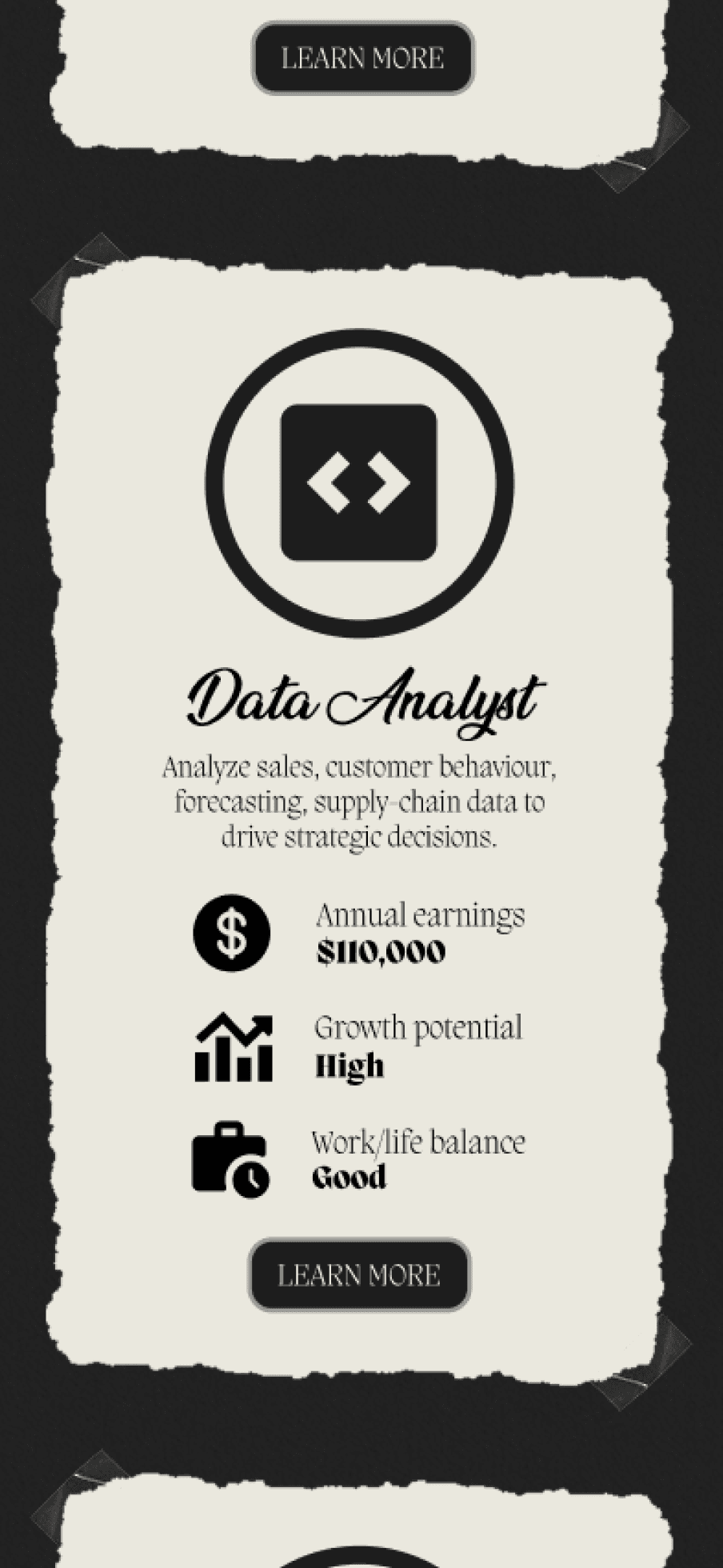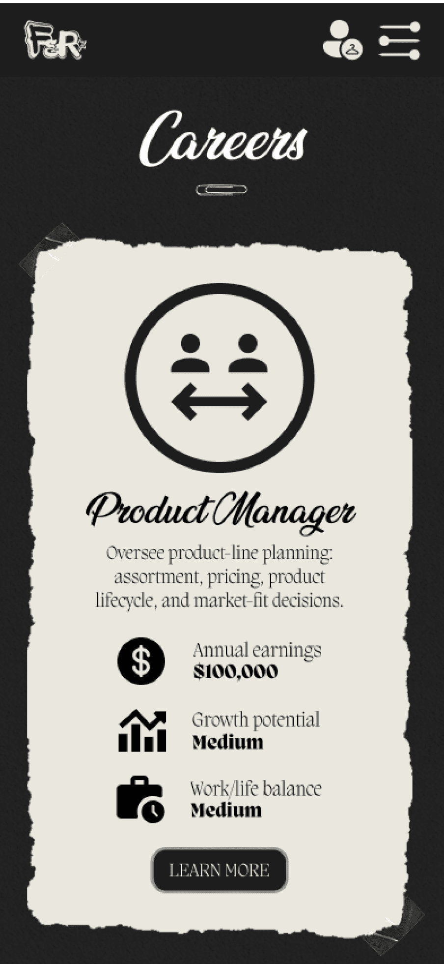 The careers page is designed to help students explore potential career paths in the fashion & retail industry.