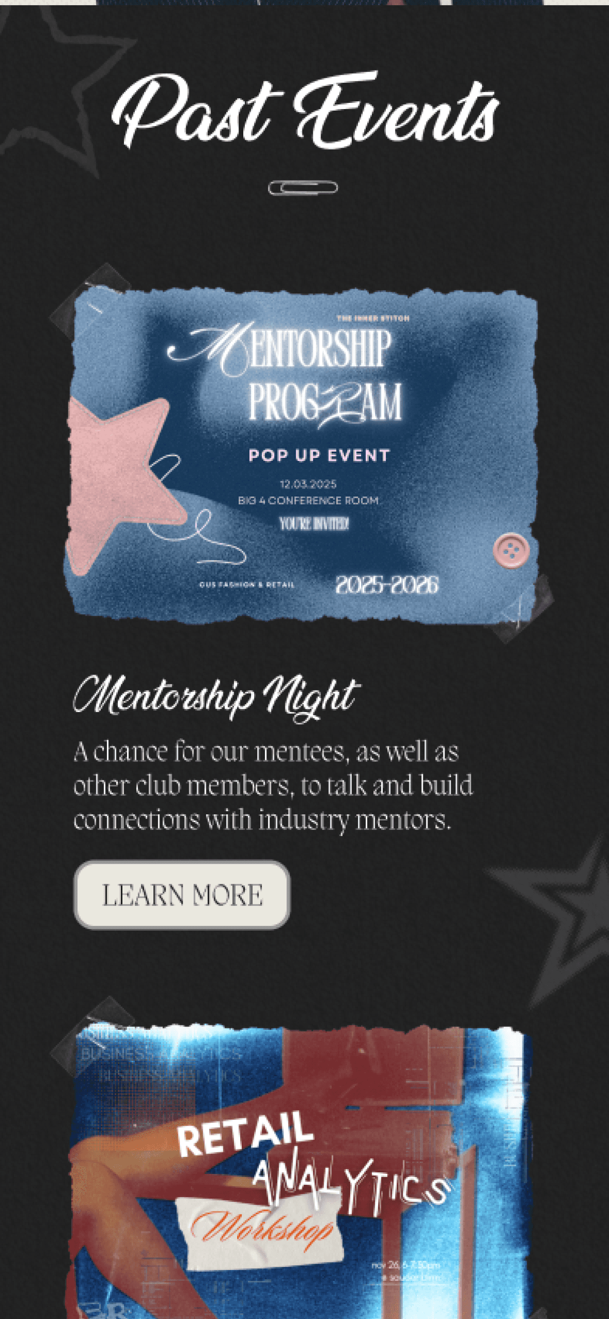 Through tying in our club’s branding and identity, pulling from outside inspiration, and not relying on a simple Wix template to create the site, I feel I’ve made something truly unique.